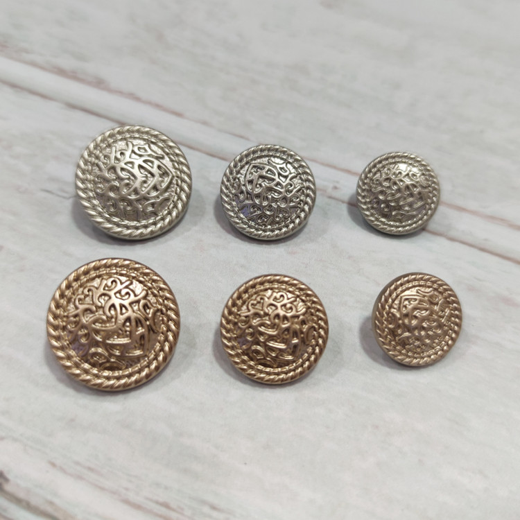 دکمه مجلسی زنانه،طرح فلز،آبکاری قوی،در سه سایز با قطرهای ذکر شده،در دو رنگ بژ (طلایی و نقره ای مات)،مناسب استفاده به عنوان دکمه ی کت یا مانتو