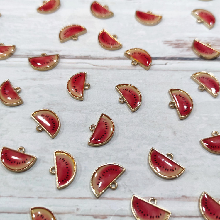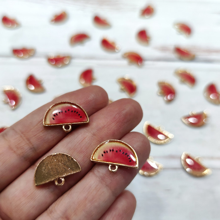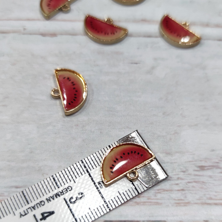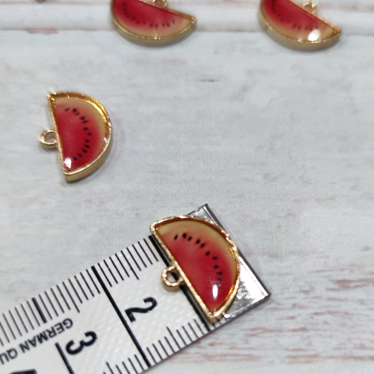 خرجکار آویز فلزی-رزینی هندوانه یلدایی،با کیفیت بالا و آبکاری قوی فلز، و رنگی جذاب و طبیعی،مناسب ساخت و تزئین انواع زیورآلات و اکسسوری های یلدایی