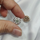 دکمه های شومیزی نگیندار زیبا،در طرحهای مختلف و دو رنگ طلایی و نقره ای با آبکاری قوی و پایه دار موجود میباشد