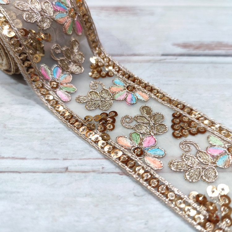نوار خرج کار سوزندوزی هندی،گلدوزی و سوزندوزی شده بر روی پارچه حریر،بسیار زیبا و پر طرفدار،با کیفیت عالی موجود می باشد