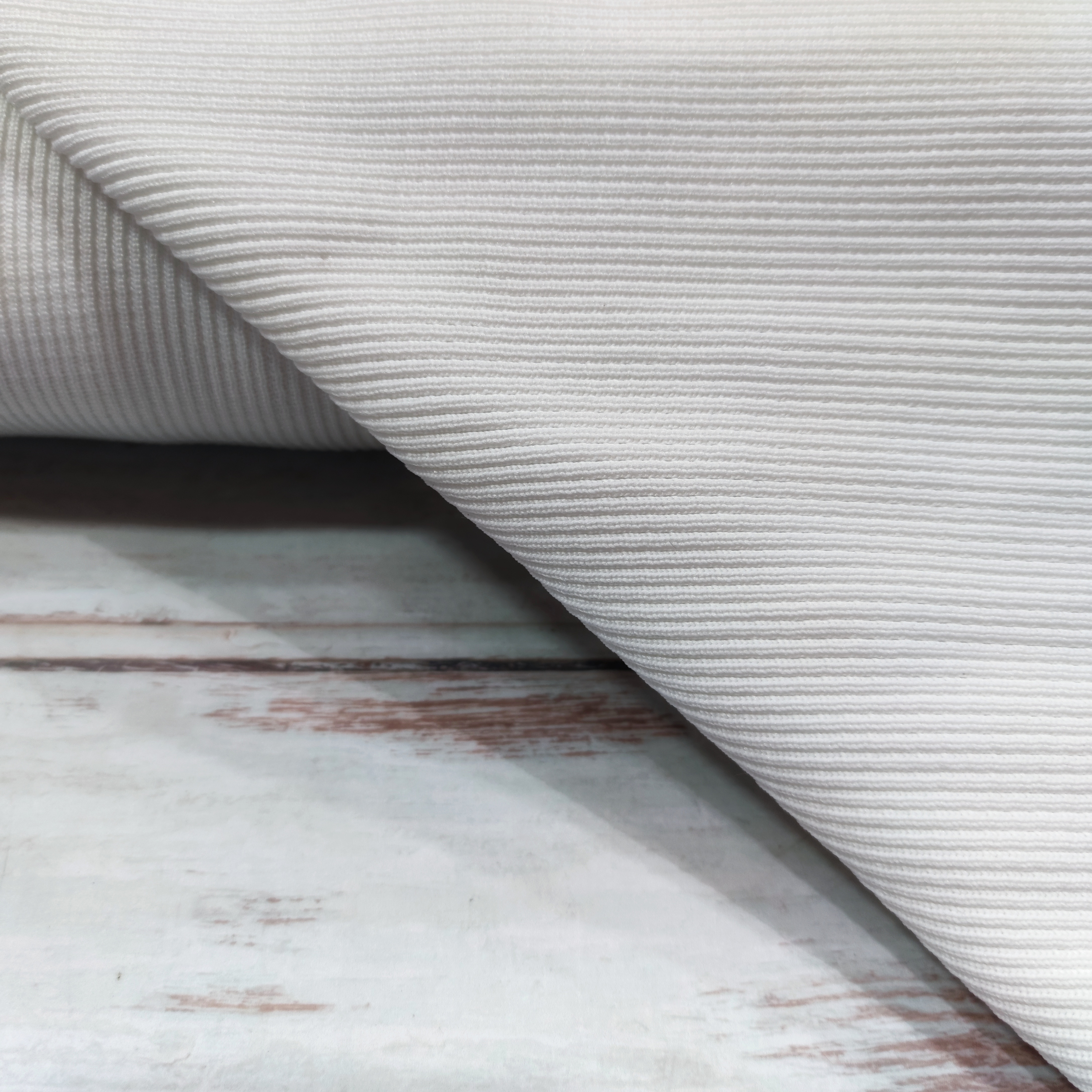 کشباف(کشبافت)ضخیم کبریتی سفید اعلا،حاوی لاکرا که باعث استحکام و عمر بیشتر کشباف شده و همینطور حفظ کشسانی آن در برابر شستشو و اصطکاک میشود مناسب استفاده در پایین و دور مچ کاپشن و هودی و البسه ورزشی و ... می باشد.